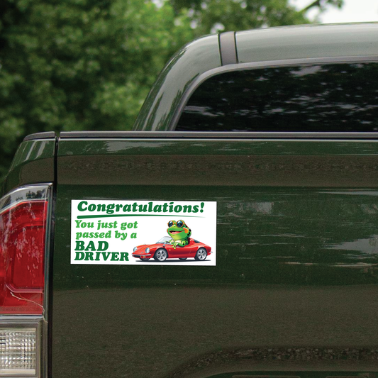 Congratulations You Just Got Passed By a Bad Driver Bumper Sticker - Frog Bumper Sticker